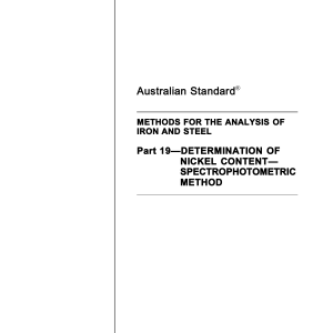 Sets out a spectrophotometric method for the determination of nickel content of iron and steel in the range 0.1 to 4 percent. The method is technically equivalent to ISO 4939, Steel and cast iron – Determination of nickel content – Spectrophotometric method, and will supersede AS K1, Part 19-1963, Nickel present in small amounts of carbon and low alloy steel (Photometric method).