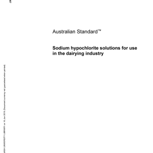 Sets out requirements for manufacturers of sodium hypochlorite for the dairying industry. It also provides guidelines for the dairying industry for the use of sodium hypochlorite solutions for sanitizing equipment and surfaces. Content history AS 1087-1991 [Superseded] Please select a variation to view its description. Published 01/01/2003 Pages 17 Please select a variation to view its pdf.