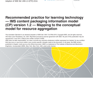 Identically adopts IEEE Std 1484.13.3(TM):2016 which specifies how the elements and attributes defined in the IMS Content Packaging Information Model (CP) Version 1.2 relate to the components of the conceptual model for resource aggregation defined in AS IEEE 1484.13.1.KEYWORDS: IMS Content Packaging Information Model; Conceptual model; Resource aggregation;