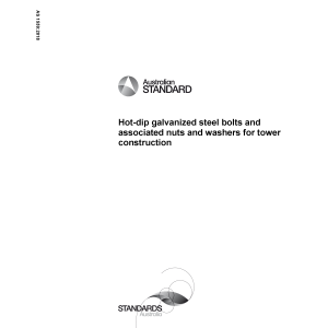 Specifies the requirements for hot-dip galvanized bolts and step bolts with ISO metric coarse pitch series threads for normal and low temperature applications in tower construction, and associated nuts and washers.