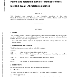 Paints and related materials — Methods of test, Method 403.2: Abrasion resistance