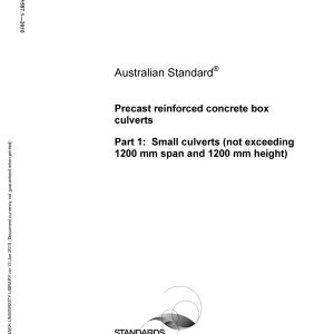 Provides designers, manufacturers, installers and specifiers of culverts with minimum requirements for the design, testing, manufacture and installation of precast reinforced concrete rectangular box culverts not exceeding 1200 mm span and 1200 mm height.