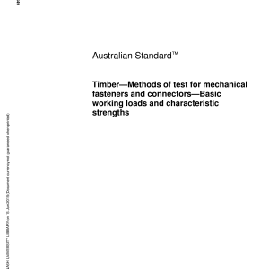 Specifies test methods and calculations used to establish basic working loads and characteristics strengths for specific mechanical fasteners and connectors for use in designing timber structures. Also sets out methods for establishing values for a particular fastener when used with timber of a particular joint group. Appendix A gives recommendations on species for joint group testing.