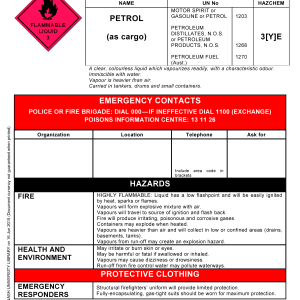 Emergency procedure guide – Transport – Petrol (as cargo)