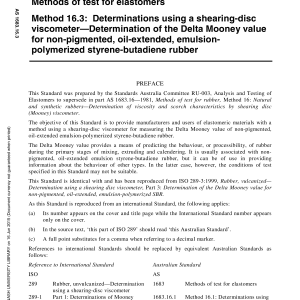 Methods of test for elastomers, Method 16.3: Determinations using a shearing-disc viscometer — Determination of the Delta Mooney value for non-pigmented oil extended, emulsion-polymerized styrene-butadiene rubber