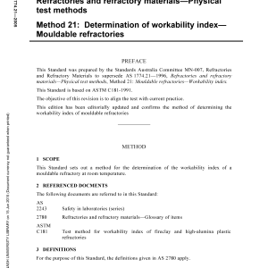 Sets out a method for the determination of the workability index of a mouldable refractory at room temperature.