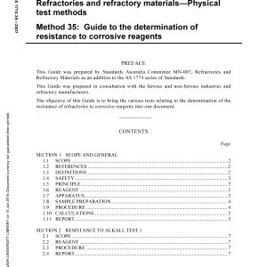 Refractories and refractory materials — Physical test methods, Method 35: Guide to the determination of resistance to corrosive reagents