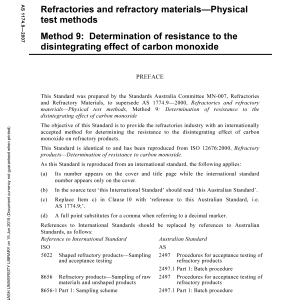 Adopts ISO 12676:2000 to specify a method for determining the comparative resistance of refractory materials to carbon monoxide disintegration.
