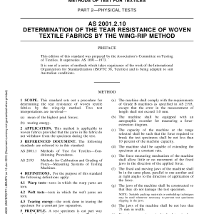 Methods of test for textiles, Part 2.10: Physical tests — Determination of the tear resistance of woven textile fabrics by the wing-rip method