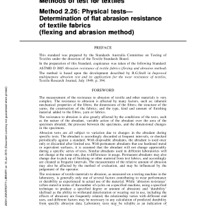 Methods of test for textiles, Method 2.26: Physical tests — Determination of flat abrasion resistance of textile fabrics (flexing and abrasion method)