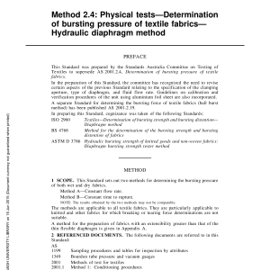 Methods of test for textiles, Method 2.4: Physical tests — Determination of bursting pressure of textile fabrics — Hydraulic diaphragm method