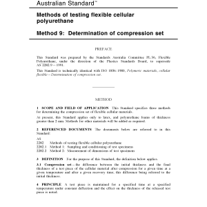 Methods of testing flexible cellular polyurethane, Method 9: Determination of compression set