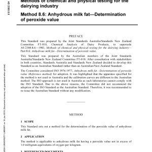 This Standard sets out a method for the determination of the peroxide value of anhydrous milk fat.