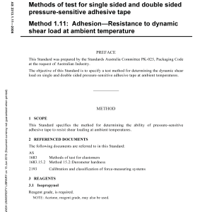 Methods of test for single sided and double sided pressure-sensitive adhesive tape, Method 1.11: Adhesion — Resistance to dynamic shear load at ambient temperature