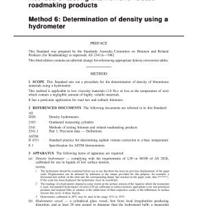 Sets out a procedure for the determination of density of bituminous materials using a hydrometer. This method is applicable to low viscosity materials (1.0 Pa.s or less at the temperature of test) which contain a negligible amount of highly volatile materials.