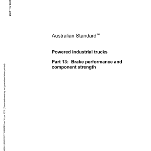 Home/AS/AS 2359.13-2005 🔍Purchase the full subscription package now and enjoy a 40% discount, along with free updates for future editions. AS 2359.13-2005$109.95 Powered industrial trucks, Part 13: Brake performance and component strength AS 2359.13-2005 quantity Add to cart PDF Format Searchable Printable Preview Now Description Edition Details Additional information Preview PDF Adopts ISO 6292:1996 to specify performance requirements, test methods, controls, control forces and component strengths for brakes, fitted to powered industrial trucks. Additional safety considerations have been added in an appendix. Content history ISO 6292:1996 [Superseded] ISO 6292-1996 Please select a variation to view its description. Published 17/03/2005 Pages 8 Please select a variation to view its pdf. Related products AS/NZS 1462.8:2008 $63.00 Add to cart AS 1602-1974 $70.15 Add to cart AS (E)D2522-1941 $23.02 Add to cart AS/NZS 4641:2007 $149.01 Add to cart