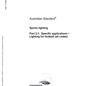 Specifies requirements particular to lighting grounds for playing Australian Rules, Rugby League, Rugby Union and Soccer and examines the particular visual tasks associated with this sport. Lighting levels are specified for recreational, training, amateur and professional levels of play but lighting for television broadcasting is not included. To be read in conjunction with AS 2560.1.