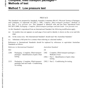 Sets out a method of subjecting complete, filled transport packages to conditions of low air pressure, similar to those encountered in aircraft. Identical with and reproduced from ISO 2873:2000.