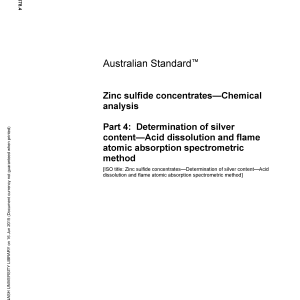 Sets out an acid dissolution AAS method for determining the silver content of zinc sulfide concentrates. This Standard is identical with and has been reproduced from ISO 15247:1999. Content history AS ISO 15247:2016 [Current] ISO 15247:1999 [Superseded] ISO 15247-1999 Please select a variation to view its description. Published 01/01/2002 Pages 15 Please select a variation to view its pdf.