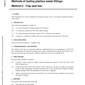 This Standard sets out the method for testing the trap seal of concealed membrane plastics waste traps.