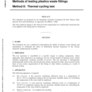 This Standard sets out a method for determining the ability of plastics waste fittings and attachments to withstand the effect of differential thermal expansion of the various materials comprising the assembly.