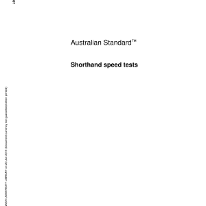 Specifies a method for the design, conduct, assessment and certification of office shorthand speed tests of 60 wpm or greater. Includes a list of 500 common Australian business words. Content history AS 2907-1986 [Superseded] Please select a variation to view its description. Published 01/01/2001 Pages 20 Please select a variation to view its pdf.