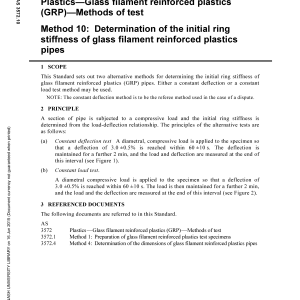 Plastics — Glass filament reinforced plastics (GRP) — Methods of test, Method 10: Determination of the initial ring stiffness of a glass filament reinforced plastics pipes