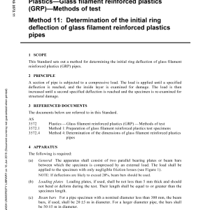 Plastics — Glass filament reinforced plastics (GRP) — Methods of test, Method 11: Determination of the initial ring deflection of glass filament reinforced plastics pipes