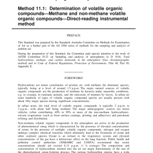Sets out a method for continuous or intermittent sampling and determination of methane and non-methane volatile organic compounds using a direct-reading instrument. The method is applicable to air with a methane concentration in the range of 0 to 10 ppm, or non-methane volatile organic compounds of equivalent carbon content.