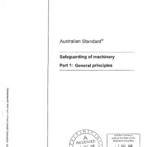 Specifies the general underlying principles for the safeguarding of industrial machinery and provides means for hazard and risk identification arising from the use of machinery during all phases of machine life. Methods for minimizing or eleminating these hazards and risks, for safeguarding machines and for safe work practices are described. Guidelines for determining the appropriate safety measures and interlocking levels are provided. It does not provide guidance for safeguarding any specific machines.
