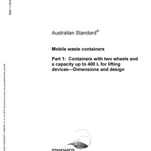 Specifies requirements for manufacturers, designers and regulatory authorities with uniform minimum requirements in the design, safety and performance of mobile waste containers with two wheels, with a nominal capacity up to 400 L.