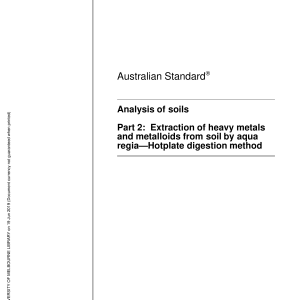 Specifies a method for the extraction of heavy metals and metalloids from soil using aqua regia. Analytical techniques appropriate to the analyte content in the soil are used for the subsequent determination of heavy metals and metalloids in the resulting solution.