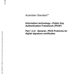 Home/AS/AS 4539.1.2.2-2001 🔍Purchase the full subscription package now and enjoy a 40% discount, along with free updates for future editions. AS 4539.1.2.2-2001$125.14 Information technology — Public Key Authentication Framework (PKAF), Part 1.2.2: General — PICS Proforma for digital signature certificates AS 4539.1.2.2-2001 quantity Add to cart PDF Format Searchable Printable Preview Now Description Edition Details Additional information Preview PDF Specifies the profile for the Signature Certificates (PAA, PCS, CA, external domain certificates, and end entitles) for use in the Public Key Authentication Framework (PKAF). Content history Please select a variation to view its description. Published 01/01/2001 Pages 26 Please select a variation to view its pdf. Related products AS 2331.3.10-2001 $47.81 Add to cart AS 1668.1:2015 $319.69 Add to cart AS/NZS 4641:2007 $149.01 Add to cart AS 1189.7-1982 $100.10 Add to cart