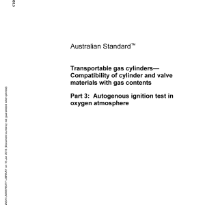 Home/AS/AS 4955.3-2003 🔍Purchase the full subscription package now and enjoy a 40% discount, along with free updates for future editions. AS 4955.3-2003$87.70 Transportable gas cylinders — Compatibility of cylinder and valve materials with gas contents, Part 3: Autogenous ignition test in oxygen atmosphere AS 4955.3-2003 quantity Add to cart PDF Format Searchable Printable Preview Now Description Edition Details Additional information Preview PDF Specifies a test method to determine the autogenous ignition temperature of non-metallic materials in pressurized gaseous oxygen. This Standard is identical with and has been reproduced from ISO 11114-3:1997. Content history ISO 11114-3:1997 [Superseded] ISO 11114-3-1999 Please select a variation to view its description. Published 24/12/2003 Pages 9 Please select a variation to view its pdf. Related products AS 1602-1974 $70.15 Add to cart AS 2400.13-1983 $63.00 Add to cart AS 1038.10.3-1998 $47.81 Add to cart AS/NZS 3837:1998 $125.14 Add to cart