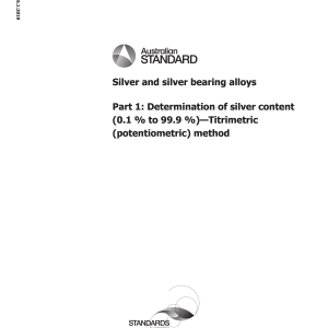 This Standard sets out a titrimetric procedure for the determination of silver content in silver and silver bearing alloys in the range 0.1 % to 99.9 % silver with < 20 % gold and platinum group metals.