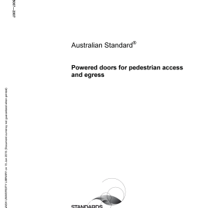 Proposes requirements for the design, and test methods for, drive units, leaves and components of powered pedestrian doors, including constructions that are operated electro-mechanically, electro-hydraulically or pneumatically.