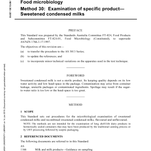 This Standard sets out procedures for the microbiological examination of sweetened condensed milks and recombined sweetened condensed milks, flavoured and unflavoured.