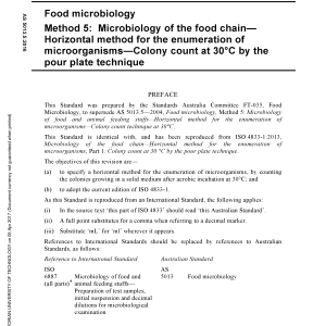 Food microbiology, Method 5: Microbiology of the food chain — Horizontal method for the enumeration of microorganisms — Colony count at 30°C by the pour plate technique
