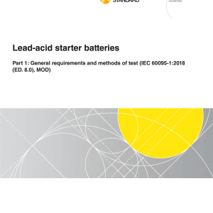 AS 60095.1:2022 adopts IEC 60095 1:2018 with modifications for Australia, which specifies the general requirements, essential functional characteristics, relevant test methods and results required, for several classes of starter batteries. Applicable to lead-acid batteries with a nominal voltage of 12 V, used primarily as a power source for the starting of internal combustion engines, lighting, and auxiliary equipment of internal combustion engine vehicles.