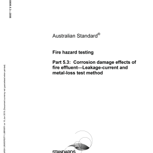 Home/AS/AS 60695.5.3-2006 🔍Purchase the full subscription package now and enjoy a 40% discount, along with free updates for future editions. AS 60695.5.3-2006$152.56 Fire hazard testing, Part 5.3: Corrosion damage effects of fire effluent — Leakage-current and metal-loss test method AS 60695.5.3-2006 quantity Add to cart PDF Format Searchable Printable Preview Now Description Edition Details Additional information Preview PDF The AS 60695 series of Standards provide guidance and test methods for assessing fire hazards of electrotechnical equipment, their parts (including components) and electrical insulating materials. Content history IEC TS 60695-5-3:2003 [Withdrawn] IEC 60695-5-3-2003 Please select a variation to view its description. Published 28/06/2006 Pages 21 Please select a variation to view its pdf. Related products AS (E)D2522-1941 $23.02 Add to cart AS/NZS 3837:1998 $125.14 Add to cart AS/NZS ISO 11334.1:2014 $125.14 Add to cart AS 2400.13-1983 $63.00 Add to cart