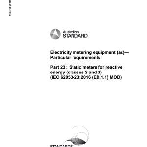 This Standard is an adoption with national modifications and has been reproduced from IEC 62053-23:2003+AMD.1:2016 CSV (ED.1.1), Electricity metering equipment (a.c.)—Particular requirements, Part 23: Static meters for reactive energy (classes 2 and 3). This Standard communicates to users, and also provides manufacturers with the particular requirements for class 2 and 3 reactive energy static meters intended for use in Australia.