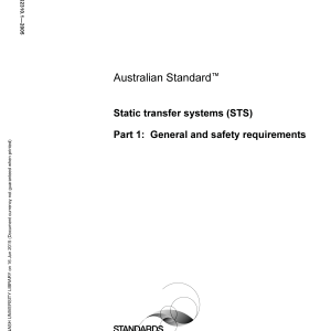 Home/AS/AS 62310.1-2005 🔍Purchase the full subscription package now and enjoy a 40% discount, along with free updates for future editions. AS 62310.1-2005$247.95 Static transfer systems (STS), Part 1: General and safety requirements AS 62310.1-2005 quantity Add to cart PDF Format Searchable Printable Preview Now Description Edition Details Additional information Preview PDF Applies to free standing a.c. static transfer system (STS) intended to ensure the continuity of power to load by automatically or manually controlled transfer, with or without interruption, from two or several a.c. independent sources. Content history IEC 62310-1:2005 [Current] AS 62310.1-2005 Rec:2016 IEC 62310-1 ED. 1 (2005) Please select a variation to view its description. Published 01/12/2005 Pages 51 Please select a variation to view its pdf. Related products AS 1716-1991 $213.50 Add to cart AS/NZS 3837:1998 $125.14 Add to cart AS 1603.2-1990 $70.15 Add to cart AS (E)D2522-1941 $23.02 Add to cart
