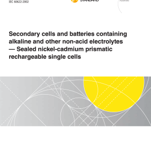 AS IEC 60622:2022 identically adopts IEC 60622:2002, which specifies marking, tests and requirements for sealed nickel-cadmium prismatic secondary single cells Content history IEC 60622:2002 [Current] AS 3731.2-1995 [Superseded] DR AS IEC 60622:2022 Please select a variation to view its description. Published 19/08/2022 Pages 12 Please select a variation to view its pdf.