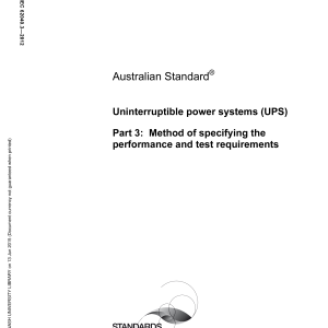 Adopts IEC 62040-3 Ed.2.0 to provide manufacturers, designers and users with a means of specifying performance and test requirements of a complete uninterruptible power system. Content history IEC 62040-3:2011/COR1:2011 [Superseded] IEC 62040-3:2011 [Superseded] AS 62040.3-2002 [Superseded] AS 62040.3-2002 AMDT 1 [Superseded] DR AS IEC 62040.3 view more Please select a variation to view its description. Published 30/04/2012 Pages 98 Please select a variation to view its pdf.
