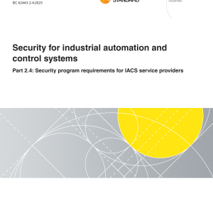 AS IEC 62443.2.4:2024 identically adopts IEC 62443 2 4:2023, which specifies requirements for security-related processes that IACS service providers can offer to the asset owner during integration and maintenance activities of an Automation Solution Content history IEC 62443-2-4:2023 [Current] DR AS IEC 62443.2.4:2024 Please select a variation to view its description. Published 03/05/2024 Pages 94 Please select a variation to view its pdf.
