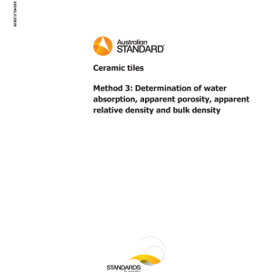 The objective of this Test Method is to specify a method for determining water absorption, apparent porosity, apparent relative density and bulk density of ceramic tiles. This method is applicable to classification of tiles and product specifications.