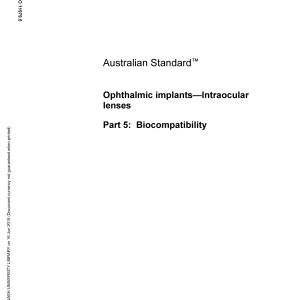 Home/AS/AS ISO 11979.5-2003 🔍Purchase the full subscription package now and enjoy a 40% discount, along with free updates for future editions. AS ISO 11979.5-2003$213.50 Ophthalmic implants – Intraocular lenses, Part 5: Biocompatibility AS ISO 11979.5-2003 quantity Add to cart PDF Format Searchable Printable Preview Now Description Edition Details Additional information Preview PDF Specifies particular requirements for the biological evaluation of intraocular lenses which are in addition to the requirements outlined in the relevant parts of ISO 10993. It also gives guidance on conducting an ocular implantation test. Content history ISO 11979-5:1999 [Superseded] ISO 11979-5-1999 Please select a variation to view its description. Published 01/01/2003 Pages 14 Please select a variation to view its pdf. Related products AS 2400.13-1983 $63.00 Add to cart AS 1716-1991 $213.50 Add to cart AS/NZS 1462.8:2008 $63.00 Add to cart AS 1602-1974 $70.15 Add to cart