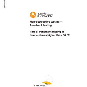 The objective of this Standard is to specify— (a) the requirements for non-destructive testing using penetrant, particular to applications at higher temperatures (higher than 50 °C); and (b) the method for qualification of suitable testing products.