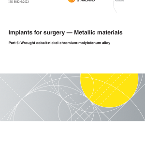 AS ISO 5832.6.2023 identically adopts ISO 5832 6:2022 which specifies the characteristics of, and corresponding test methods for, wrought cobalt-nickel chromium-molybdenum alloy for use in the manufacture of surgical implants.