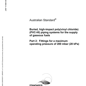 Adopts ISO 6993-2:2006, which specifies the requirements for non-end load-bearing fittings made of high-impact poly(vinyl chloride) (PVC-HI) intended to be used for the supply of gaseous fuels through buried pipelines having an operating temperature range of 0 degrees Celsius up to and including +30 degrees Celsius and a maximum operating pressure of 200 mbar (20 kPa).